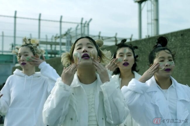 ガールズバンドのメンバーが満面の笑みで原付バイクに乗って画面のなかを跳ねまわるポップなMV!
