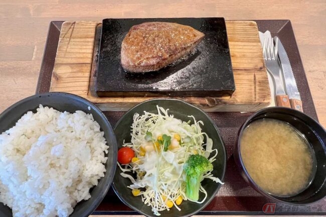 2025.05.04東名高速道路「駒門PA」(下り)では、富士山の溶岩プレートで焼き上げる熱々のステーキをいただくことができます。想像を超える分厚さ、ジューシーさに感動のPA飯を紹介します。