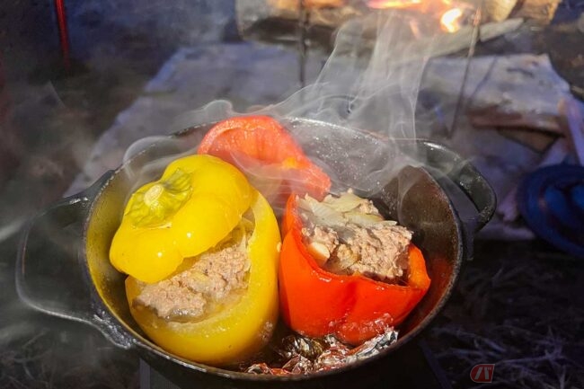 切って詰めて焼くだけ!? 映えて旨い「パプリカの肉詰め」 キャンプツーリングの簡単アレンジ飯