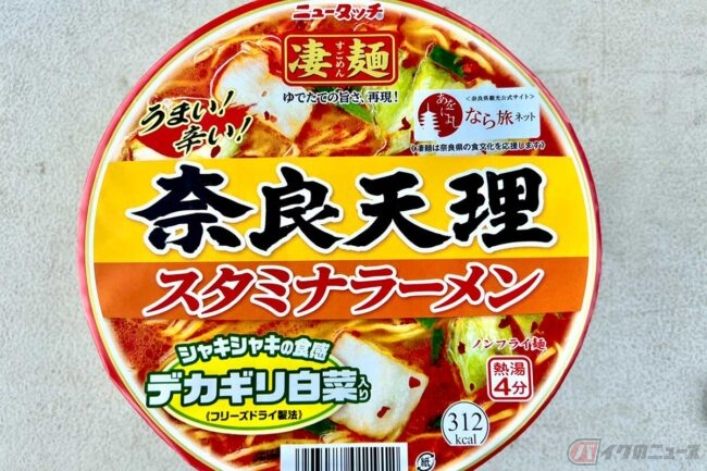 ツーリング先で出会ったご当地カップ麺 「奈良天理スタミナラーメン」の目玉はデカギリ白菜!