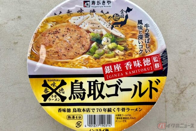 ツーリング先で出会ったご当地カップ麺 上品な味わいと香りの「鳥取ゴールド牛骨ラーメン」