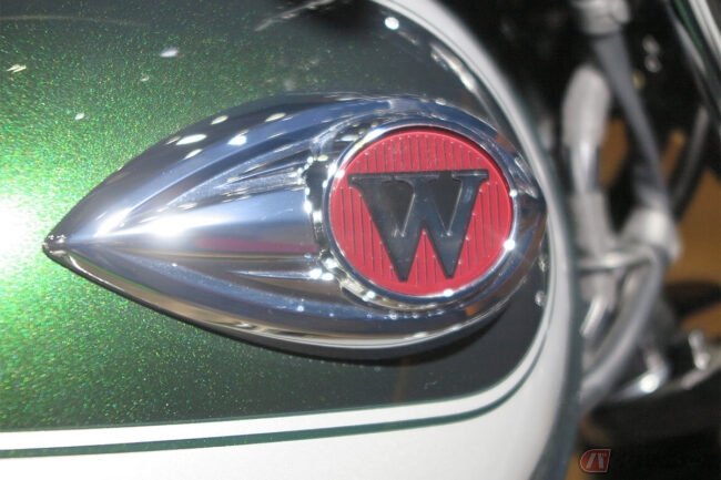 カワサキ「MEGURO K3」発売のウラで繰り広げられる川崎重工と特許庁の激しい攻防 じつは商標登録してなかった!? 2019年の東京モーターショーでは、カワサキブースの正面にニューモデルの「W」ではなく「カワサキ500メグロK2」が展示され、いよいよメグロブランド復活かと匂わせる演出が 2019年東京モーターショーのカワサキブース奥にはニューモデルの「W800」が展示されていた 「MW(メグロワークス)」の細かなエンブレムデザインの造形は当時、バイクが非常にステイタスを持っていたことを感じさせる。当時は七宝焼で色付けされていた 「W800」シリーズのキャッチフレーズ「THE ORIGINAL ICON」は世界共通のテーマで、海外でも日本の風景の中での「W800」のプロモーション画像や動画が使用されている 「W」のエンブレムデザインは日本でも海外でも問題なく商標登録されている NEW ERAとのコラボキャップやTシャツなどのアパレルも発売予定 満を持して発表、2021年2月発売決定となったカワサキ「MEGURO K3」だが、その名称やロゴの商標登録には紆余曲折があった 2019年東京モーターショーのカワサキブース正面に展示された「カワサキ500メグロK2」。奇しくも、ホンダも原点回帰をテーマに歴代「CB」シリーズを展示していたが、そちらはブースの奥だった 特許庁に「デザイン化の程度は格別特異のものとはいえない」「普通に用いられる域を脱しない程度」と酷評され商標登録を一旦拒絶されたメグロのカタカナロゴ。昭和モダンでカッコイイロゴだと思えるが…… 通称「メグロワークス」と呼ばれる「カワサキ500メグロK2」のエンブレムのデザインも、すぐに商標登録というわけにはいかなかった カワサキ「MEGURO K3」のエンブレムはアルミニウム製で色付けは職人が手作業で行なっているとのこと 関連記事 あの名シーンに思わずニヤリ!? バイク王が「バリバリ伝説」とコラボした! (PR)バイク王 250ccクラスのストリートファイター KTM「250 DUKE」2026年モデル発表にSNS上で反響 あえて2024年モデルを選ぶのもアリ!? 危険なのは「7歳」と「高校1年生」!? 事故が増える新学期~5月は特に注意 自転車の「青切符」対象は16歳から じつは危険な首都高 “事故啓発に本腰” バイク事故の死傷率はそれ以外の約23倍!? 単独事故ばかりじゃない事実に注目 惜しまれつつも姿を消したバイクたち 有終の美を飾る「ファイナルエディション」 やたらと多いのはカワサキ!? この画像の記事を読む バイク不足で高騰中!愛車の相場を調べてみる>> 画像ギャラリー