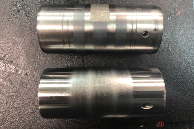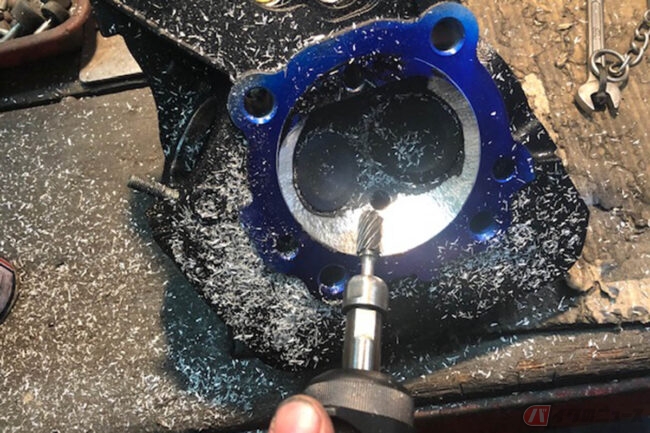 ハーレーにはなぜハイオクガソリンなのか? 「サンダンス」柴崎武彦氏が語るオクタン価と圧縮比の話(前編) 2017年式の排気量103cu-in(約1680cc)を誇るH-Dツインカムエンジンの燃焼室がコチラ。カタログスペック上の圧縮比は9.7:1ですが日本のガソリン事情を考えても明かに過剰な高圧縮。それゆえのトラブルも頻発します。これを効率ピークの8.8にするにはノーマル燃焼室体積の約97ccを約108ccまで拡大する必要があります 適切圧縮比に必要な燃焼室体積が決定したらシリンダーボア径を燃焼室の周辺にケガキ、それに沿って少しでもプラグが中心になるようプラグ側を多く拡張していきます。おおよそラフに削りながら体積を測定し、プラス約10ccになるよう仕上げます エンジンのノッキング(異常燃焼)はヘッドやシリンダー、ピストンはもちろん、ご覧のようにクランクピンにまで深刻なダメージを与えます。日本のガソリン事情を考えると海外仕様のチューニングパーツをポン付けすることが如何に危険かはご理解頂けると思います。ちなみに現在のハーレーは純正のクランクがオーバーホール出来ないようバラでのパーツ供給がなく、アッセンブリーでの交換を推奨していますがユーザー側の金銭的負担は甚大です。サンダンスではクランクをバラした上でウエイトバランスを取り、シビアな芯出し作業を行いオーナー側の金銭的負担を軽減するよう努めています まずヘッドとシリンダー、ピストンを取り外し、コンロッドが剥き出しの状態で前後左右に動かしてガタを確認した後、クランクケースを分解して取り出されたクランクアッセンブリー。プレス等を用いてここを全てバラバラにします 上の新品と比較すると中心に段減りが確認出来るノッキングを起こしたエンジンのクランクピン。この傷の深さからも巨大なパワーが如何にエンジンダメージを与えているかが良く分かります エンジンがノッキングを起こしていない下のクランクピンと上にあるノッキングを起こしたエンジンのクランクピンを比較してもダメージのほどが伺えます。上のクランクピン、センター部のエグりをご覧頂ければお分かりのとおり、これが高圧縮が原因のノック現象によるクランクダメージの典型的な症状です チューニングエンジンにはプレミアムガソリンの使用を指定するアメリカのスタンド。このように同国では100オクタンを超える高性能ガソリンが手に入りますが、対して日本では100オクタンを超えるガソリンの入手は困難になっています 今回、お話を伺った柴崎武彦氏は1982年にサンダンスを創設して以来、“走る、曲がる、止まる”というファクターに重きを置いたカスタムビルドを信条とするハーレーダビッドソンのチューニングのスペシャリスト。1989年にレース活動をスタートし、1992年から米国のデイトナスピードウェイで開催されるツインレース“BOT”にオリジナルのレーシングマシンである“デイトナウエポン”で参戦。1998年には“デイトナウエポンⅡ”であの鈴鹿8時間耐久にも参戦を果たす。数々のレース活動やストリートでの経験を活かしたハーレーらしい鼓動感に溢れるマシン造りに定評のある人物です。また海外のH-Dシーンでも関係者から“Zak”の愛称で呼ばれ、親しまれています 米国のスタンドの給油機を見れば“Regular”と“Extra”“Supreme+”と三種類のガソリンが確認出来ます。ちなみに日本ではオクタン価96以上がハイオク、89以上がレギュラーと区分されているのですが、実際の日本のガソリン表記ではオクタン価が数値より低いように感じられます 約11cc分の燃焼室体積を削り仕上げられたシリンダーヘッド。このような作業を経て適切な圧縮比となったヘッドはノッキングの防止だけではなくパワーとトルクもアップします 関連記事 「#バイク愛と」で投稿! バイク王×バリ伝のグッズが当たる! (PR)バイク王 究極のエアロロードとクラシカルなレーシングロード!! 「コルナゴ」の現代と過去を象徴する2モデルに新色登場 脳がバグる!? 日本人スタントライダー小川裕之のハイ・パフォーマンス まるでバイクと踊るように 埼玉県・小鹿野町が元祖の「わらじかつ丼」も諦めきれず『お食事処ななたき』で堪能した嬉しい味わい 美味しいアジフライを求めて走る旅 城跡に“猫”あり!? 栃木県佐野市「唐沢山城」で味わう歴史とぬくもり バイクで往く城跡巡り この画像の記事を読む 「#バイク愛と」でグッズが当たる! バイク不足で高騰中!愛車の相場を調べてみる>> 画像ギャラリー