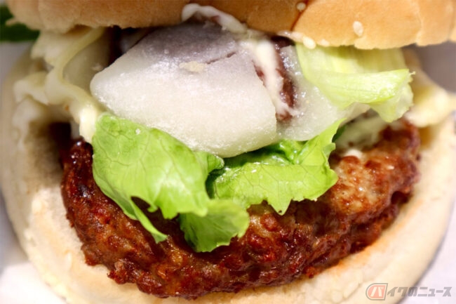 オーソドックスなパティに大福餅が加わり未体験の味わいに。甘くてしょっぱい、意外とすんなり食べられる。腹持ちは良さそう