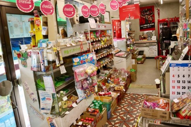 駄菓子屋でもある店内。色々な商品が所狭しと陳列されている