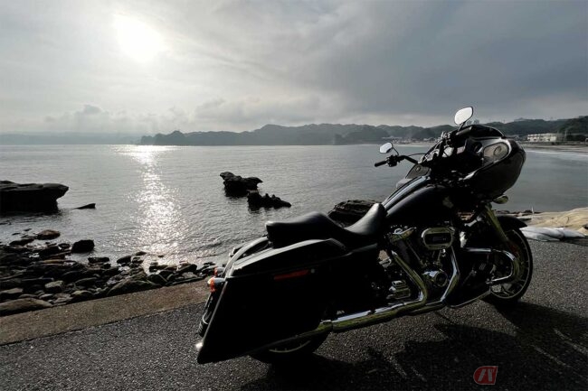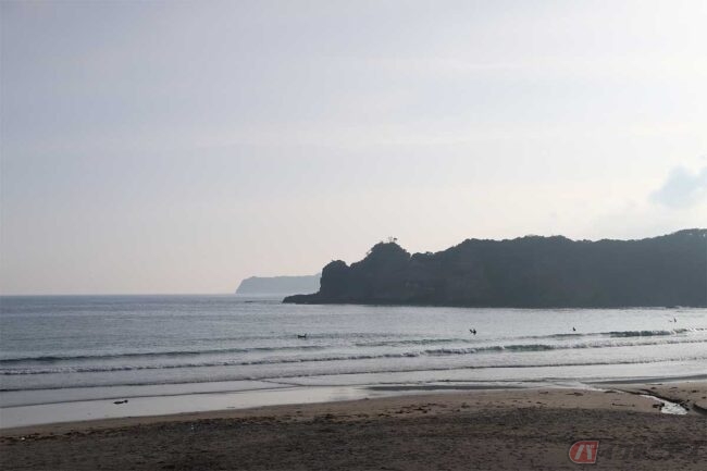 房総半島を内房から南端をぐるっと回って勝浦市へ。市街地に入る前に海岸線に出てみると、太平洋側へ広がる気持ちの良いビーチがあった