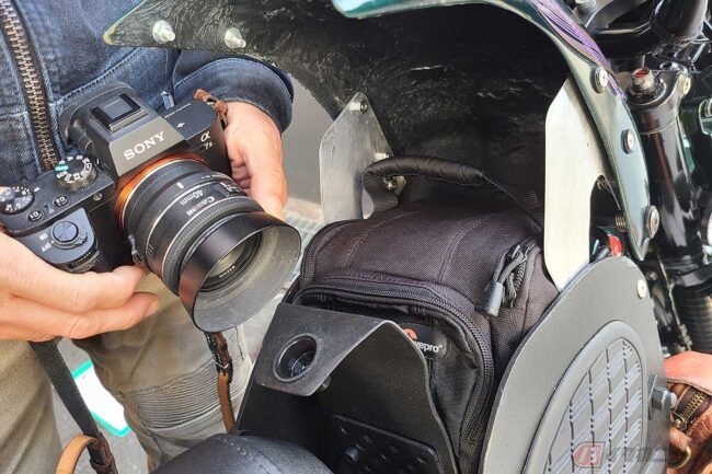 ダミータンクカバーの中には一眼レフカメラを収納