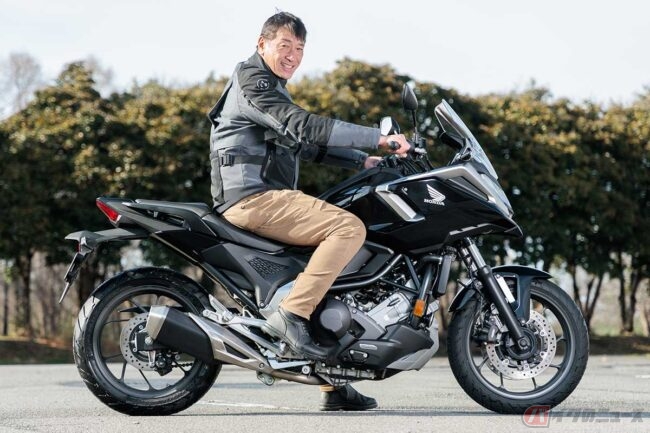 ホンダ「NC750X Dual Clutch Transmission」(2025年型)に試乗する筆者(松井勉)