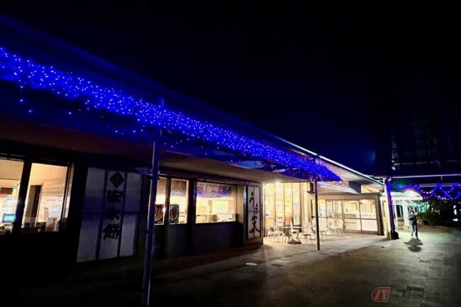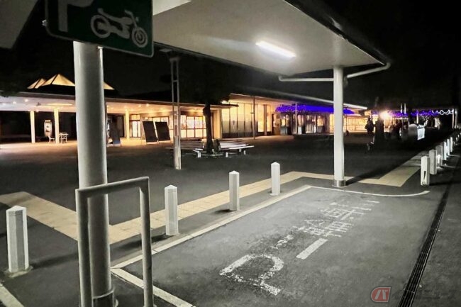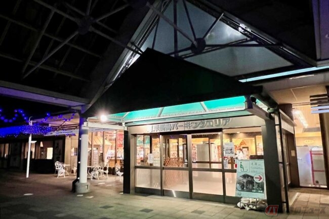 夜のライトアップも美しい「湾岸長島PA」(上り)