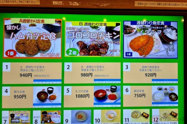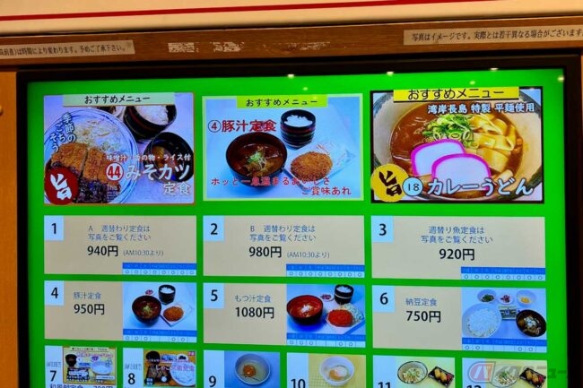 券売機のメニュー画像は自動で切り替わるので、少し眺めてチェックする