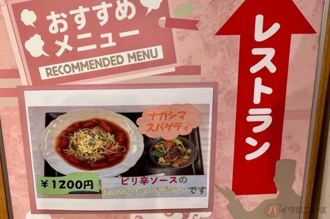 ふと視界に飛び込んできたレストランの「ピリ辛ソースあんかけスパゲティ」が気になる。名古屋メシ的な中部地方ならではのメニューだろうか?