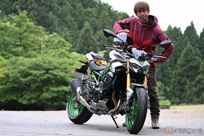 カワサキ「Z900 SE」2026年モデルと筆者(青木タカオ)