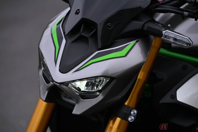 カワサキ「Z900 SE」2026年モデル。3連のLEDヘッドライトは、上部2つがロービーム、下部がハイビームとして機能