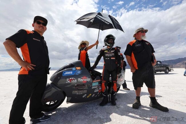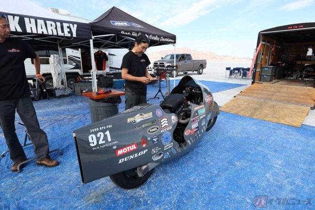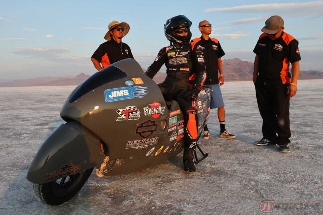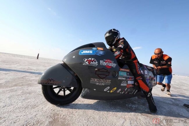 広大な塩の平原で世界最高速記録に挑戦!! 自然との戦いでハーレーがベースの専用マシンが叩き出したのは時速216マイル!? FIMとAMAのランドスピードレースで多くの最速記録を持つ小磯博久さん。2025年の目標は時速260マイルの自己記録を正式な世界記録にすることだった FIMとAMAのランドスピードレースで多くの最速記録を持つ小磯博久さん。2025年の目標は時速260マイルの自己記録を正式な世界記録にすることだった 2025年のBMSTは、コースのコンディションに恵まれずスピードを乗せきれなかった。それでも軽く時速300キロを超えている 空力を最大限に生かすためにヘルメットはSHOEI「X-Fifteen」を使用。FIMのレースなのでMotoGPと同じくFIM規格のヘルメットが必要になる 空力を最大限に生かすためにヘルメットはSHOEI「X-Fifteen」を使用。FIMのレースなのでMotoGPと同じくFIM規格のヘルメットが必要になる ランドスピードレース用のマシンなのでスタートはゆっくり。加速区間をフルに使って最高速に達する ランドスピードレース用のマシンなのでスタートはゆっくり。加速区間をフルに使って最高速に達する レース前の車検では、FIMの検査官によって安全面を中心にチェックされる レースはスタート地点で長時間待たせることも珍しくない。ボンネビルでは日差しがきついうえに日陰もない キング・オブ・ザ・バガーズに出ていたインディアンのワークスライダー、タイラー・オハラ選手が初挑戦。小磯さんからアドバイスを受けていた ロングコースがクローズされ、ショートコースを走る確認をレースのオーガナイザーから受ける シフトギアにトラブルが発生しピットでシフトをユニットで交換。小磯さんをはじめメカニックが揃っているので作業はびっくりするほど早い シフトギアにトラブルが発生しピットでシフトをユニットで交換。小磯さんをはじめメカニックが揃っているので作業はびっくりするほど早い シフトギアにトラブルが発生しピットでシフトをユニットで交換。小磯さんをはじめメカニックが揃っているので作業はびっくりするほど早い 最終日に時速216マイルを出して2025年のレースで最速を記録したが、残念ながらAMAの記録は更新できなかった 過去の記録を超えるスピードを出すとコースを逆から走るリターンラン。往復の平均速度が正式な世界記録になる ヒロ・コイソ・レーシングの集合写真。家族と友人に支えられて、小磯さんは脅威的な最高速に挑戦できる 2025年のBMSTは、コースのコンディションに恵まれずスピードを乗せきれなかった。それでも軽く時速300キロを超えている 過去の記録を超えるスピードを出すとコースを逆から走るリターンラン。往復の平均速度が正式な世界記録になる 関連記事 「#バイク愛と」で投稿! バイク王×バリ伝のグッズが当たる! (PR)バイク王 脳がバグる!? 日本人スタントライダー小川裕之のハイ・パフォーマンス まるでバイクと踊るように CB750Fにまたがって「バリバリ伝説」の世界をVR体験できる! バイク王がバイカーズパラダイス南箱根の7周年イベントに出展【PR】 スズキ二輪、2026年度の安全運転スクール日程を発表 ビギナーからベテランまで充実の内容 75.9万円!!「Vツインエンジンで排気量は250cc」「中型とは思えない迫力」日本初公開のモルビデリ「C252V」に称賛の声 この画像の記事を読む 「#バイク愛と」でグッズが当たる! バイク不足で高騰中!愛車の相場を調べてみる>> 画像ギャラリー