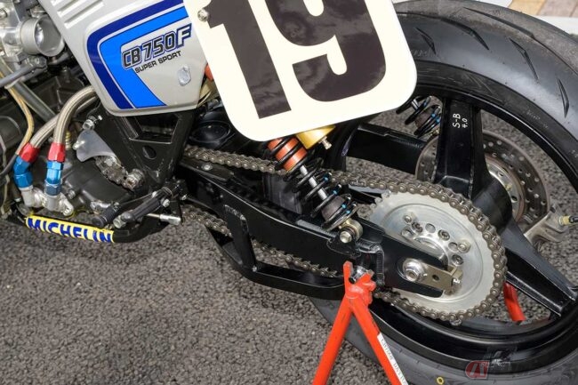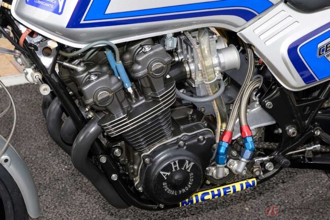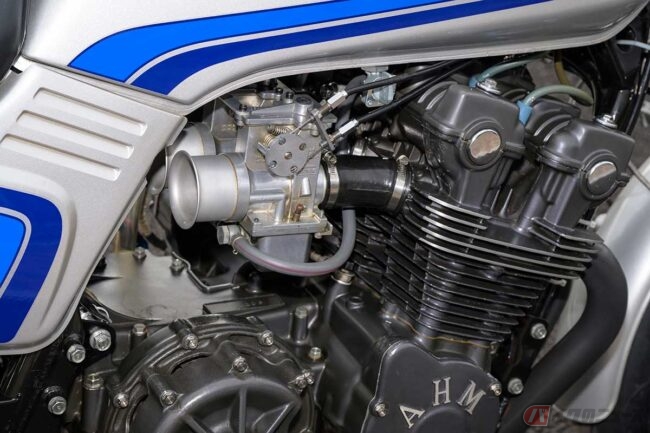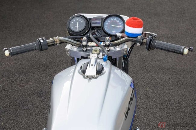 天才少年の名前で呼ばれる元祖「スペンサーカラー」は市販車最速マシン!! ホンダ「CB750F」デイトナレーサーとは スペンサー選手の好みの形状に曲げて市販されていたスペンサーバーハンドルは本人もレースで使用していた ゼッケンプレートの後ろにまさかのライトナセル。その下には大型のオイルクーラー。真四角っぽい特製の三又も当時らしくて興味深い デイトナ優勝車の証。レース車検のシールとバンドが残っている。オイルブランド「BEL-RAY」のステッカーは「CB1000F」でも流行しそう? これぞスペンサーカラーという燃料タンク。デイトナの実戦でもノーマルの鉄製が使用された 日本ではまずお目にかからない、クイックシルバー社製のフラットバルブキャブレターを採用 当時のレギュレーションに合わせて1023ccまで排気量アップ。アメリカホンダが徹底的にチューンナップして最高出力は150psとも言われている GP用のフロントフォークに16インチホイール。デイトナの高速コースに備えてフロントフェンダーも補強付き 黒く塗ってあるのでわかりにくいが、元々極太のアルミ角材に補強も加えたスイングアーム。リアショックはオーリンズ製 現在でもスペンサーカラーと呼ばれてファンに大人気のカラーリング。その源となる「CB750F」デイトナレーサー この40年の間にスペンサーカラーはさまざまなバイクに採用された。手前は2004年の「モンキースペシャル」、奥は1999年の「CB400スーパーフォア」 1952年にフレディ・スペンサー選手のライディングでデイトナで優勝したレーサー「CB750F」 なぜかスピードメーターの針は最高位置でストップ。ブレーキマスターのリストバンドも当時と同じトリコルール 関連記事 「#バイク愛と」で投稿! バイク王×バリ伝のグッズが当たる! (PR)バイク王 スズキ最新ミドルクラスアドベンチャー「V-STROM800」シリーズ発売 国内向けバイクとしては初の仕様に販売店で反響 ホンダ“原付二種”ファンモデル専門店「Cub House(カブハウス)」に早速潜入! 想像していくだけで「こんなのあったらいいな」がどんどん広がる!? “日常の中にある、ちょっと特別な居場所”の魅力 ~高梨はづきのきおくきろく。~ 小排気量でも本格的なスーパースポーツ! ホンダ「CBR150R」2026年モデルをマレーシアで発表! ホンダ横型エンジン「北米仕様」のモトスポーツ「SL70」 欠品していたABS製サイドカバーのワンオフ製作!! この画像の記事を読む 「#バイク愛と」でグッズが当たる! バイク不足で高騰中!愛車の相場を調べてみる>> 画像ギャラリー