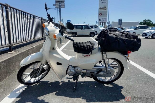 愛車のホンダ「スーパーカブ110」で、2025年の鈴鹿8耐に向かって初の原付ロングツーリングに挑戦した小野木里奈さん