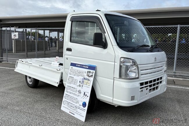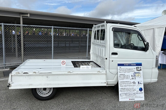 トランポにも使えるスズキの軽トラ「キャリィ」が電動化!? バイクへの技術転用も視野に開発 過剰にバッテリーを搭載しない「バッテリーリーンな電動車」の現在地とは? BEV(バッテリ電気自動車)化したスズキの軽トラック「キャリイ」 BEV(バッテリ電気自動車)化したスズキの軽トラック「キャリイ」 BEV(バッテリ電気自動車)化したスズキの軽トラック「キャリイ」 BEV(バッテリ電気自動車)化したスズキの軽トラック「キャリイ」 BEV(バッテリ電気自動車)化したスズキの軽トラック「キャリイ」 BEV(バッテリ電気自動車)化したスズキの軽トラック「キャリイ」 BEV(バッテリ電気自動車)化したスズキの軽トラック「キャリイ」 BEV(バッテリ電気自動車)化したスズキの軽トラック「キャリイ」 関連記事 「#バイク愛と」で投稿! バイク王×バリ伝のグッズが当たる! (PR)バイク王 スズキ最新ミドルクラスアドベンチャー「V-STROM800」シリーズ発売 国内向けバイクとしては初の仕様に販売店で反響 「停車時はシート高が低くなればいいのに……」自動“シャコタン”バイク 最新モデルだけじゃない!? 30年以上前にあったスズキの画期的な機構とは!! “ネット社会”でも未だ現役!! 整備のバイブルとも言える資料!! プロも使う「サービスマニュアル」とは? 250ccクラスのフルカウルスポーツ「ジクサーSF250」新色発売に熱視線!? 販売現場での反響とは この画像の記事を読む 「#バイク愛と」でグッズが当たる! バイク不足で高騰中!愛車の相場を調べてみる>> 画像ギャラリー