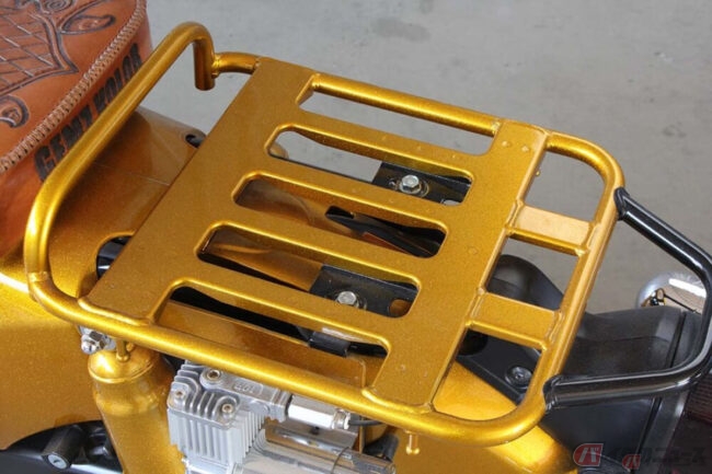 カスタムバイクで見られる「フレークペイント」。光が当たることでキラキラとした輝きを放ちます