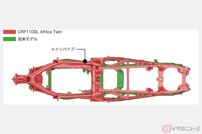 ホンダ「CRF1100L Africa Twin」のフレーム。セミダブルクレードル構造を採用しています