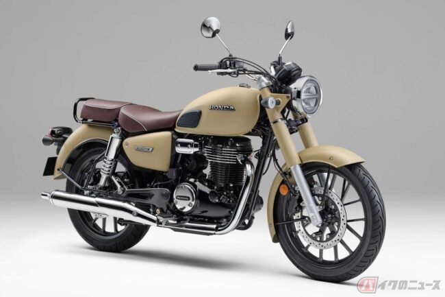 ホンダ「GB350S」は前輪にバイアスタイヤ、後輪にラジアルタイヤを履く。後輪のタイヤサイズは「GB350」や「GB350C」と異なる