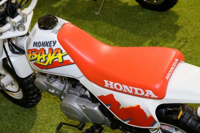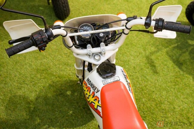 遊び心全開!? デュアルヘッドライト装備のホンダ「モンキーBAJA」 50cc原付でオフロードレーサーをオマージュ ホンダ「モンキーBAJA」(1991年型)は、オフロードレース「BAJA1000」を走るバイクがモチーフとなっている 当時大人気のオフロードモデル「XLR BAJA」(1990年型)の外観イメージを採用 ハンドルは分割された折り畳み式から、幅広でクロスバー付きのハンドルバーに変更。ハンドガードも装備 フロントフォークはフォークガード付き。ホワイトのホイールが新鮮 外装だけで上手にオフロードタイプにイメージチェンジしている 「XLR BAJA」(1990年型)同様の躍動感あふれる明るく大胆なカラーグラフィックを採用している ゼッケンプレート風のメーターバイザーとサイドカバーや、ハンドカバーなどオフロードモデル風の装備が満載 1991年に発売されたホンダ「モンキーBAJA(バハ)」は、15Wのランプを2個組み合わせたデュアルヘッドライトが特徴 燃料タンクまで伸びた前後に長いオフロードタイプのシート 関連記事 「#バイク愛と」で投稿! バイク王×バリ伝のグッズが当たる! (PR)バイク王 ホンダ横型エンジン「北米仕様」のモトスポーツ「SL70」 欠品していたABS製サイドカバーのワンオフ製作!! 「圧倒的に乗りやすい」「逆に乗りにくくないか」「やっぱり高いな」「さすがホンダ」など反響 先陣を切って発売された「新基準原付」モデル 50cc原付の代わりになる!? ホンダの「原付二種ファンモデル」専門店「Cub HOUSE(カブハウス)」がついにオープン!! “Culture”“Unique”“Bikes”の3つを結びつけたトータルコーディネートを提案 自己ベスト更新!! FIM世界耐久ロードレース選手権開幕戦「ル・マン24時間耐久」 レーシングライダー石塚健のレースレポート【前編】 この画像の記事を読む 「#バイク愛と」でグッズが当たる! バイク不足で高騰中!愛車の相場を調べてみる>> 画像ギャラリー
