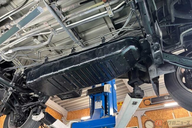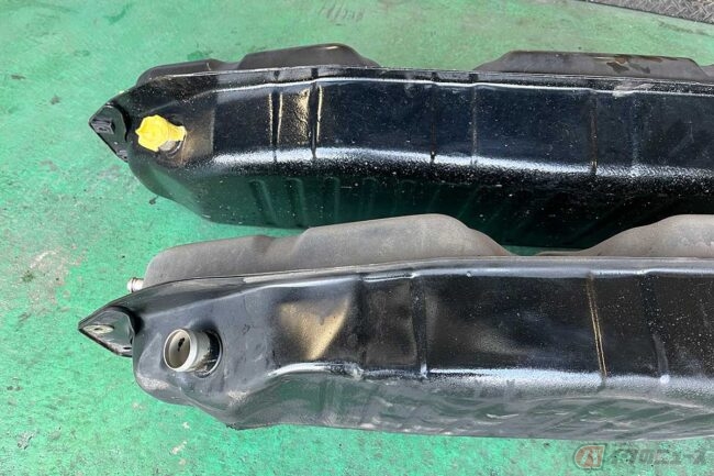 海外でも大人気の軽トラ!! 純スバル「サンバー」公道復帰の整備で気付いた不具合 燃料ゲージの誤作動原因はタンクの凹み!? Vol.23 メンテリフターで初めて持ち上げた時に、気が付いてしまったのが燃料タンク前後の凹でした。フォークリフトの爪で持ち上げられた経歴があるのだと思います。前後の凹れによって、タンク容量も減っていると思われます 仮ナンバーで走った時に、燃料が1/8程度残っていたにも関わらず(メーターのゲージ表示です)、ガス欠症状が出てしまいました。タンク交換時は、残留ガソリンの抜き取りと同時に、燃料フィルターも交換しないといけません 中古タンクはネットオークションで、サンバーバンTV2用を3000円で購入しました。当初は迷いましたが、購入したタンクが軽トラ用と共通寸法で良かったです 燃料タンク交換と同時に、念のために燃料フィルターを交換しました。ボルト2本固定のブラケットごと交換しようとしたら、残念ながらボルトは2本ともポキッと折れてしまいました。過走行車は、部品の取り外しだけでも大変です 折れてしまった2本のボルトは幸運にも貫通型でした。突き出したボルトの反対側へ防錆浸透オイルを吹き付け、バイスプライヤーでクランプして回して抜き取りに成功しました。過走行車はボルトとの闘いになることが本当に多いです サンバーバン用のオークション出品は多く、軽トラ用と比べて格安の例が多くあるようでした(落札タイミングでのお話しです)。すべての年式で互換性があるかは知りませんが、こんな買い方もあるのでご参考までに 解体屋で見つけた時の走行距離は39万ナンボでしたが、実走に入ればすぐに40万kmオーバーに。過走行でしょうね…… もともと冷凍箱を載せていた軽トラなので、前後サスペンションのスプリングが強化されている様子でした。凸凹道を走ると突き上げ感が激しかったので、標準軽トラのTT1用前後中古サスペンションに交換しました 本格フレーム構造の純スバルサンバーは、足まわりのメンテナンス性が良いのかも知れません。フロントブレーキディスがベンチレーテッドローターなのは、純スバルサンバーだけが持つ仕様かつ大きな特徴のようです パーツリストを見て驚きました。前後サスペンションの種類がとにかく豊富です。車体の重さや使われ方など、その仕様に合わせたこだわりのスプリング設定があったのだと思います。中古部品の標準TT1用サスも、ネットオークションで購入しました リアショックのバネは、ジャッキアップすると抜き取りが大変です。タイヤが接地している状態で、縮んだスプリングを梱包バンドで縛って固定しておき、ジャッキアップ後に縮んだままのバネを取り外すと作業性が良好です スバル純正サンバーのフォグランプは、年式相応の中期型用を装備しています。片側の樹脂カバーが欠品していて見つからなかったので、水道管用のPV素材を旋盤で削って、自作カバーを作って取り付けています 登録完了後、一体型のドライブレコーダーを装備しました。今の時代はドラレコは必要不可欠と言えます 純スバル最終シリーズの軽トラ「サンバー」を所有するバイク仲間は数多く、みなさん揃って「いいね~♪」と声を掛けてくれるのが、ワゴン車かのような「ハイルーフ」です。頭の上の空間は想像以上に広くて使い勝手良好です!! 取り外したガソリンタンク(下)と中古部品で購入したガソリンタンク(上)を比較すると、明らかに形状が異なっています。フォークリフトの爪で押し込まれたようです。車重に対してタンク剛性が不足しているのは明らかです 関連記事 あの名シーンに思わずニヤリ!? バイク王が「バリバリ伝説」とコラボした! (PR)バイク王 長期放置のチョイ古「スーパーカブ50(カブラ50)」復活メンテ 汚れたボディにエンジンは不動状態 でも屋根下保管車は程度「良」!? 1本2役!! 車載工具やツーリング時の簡易整備にも最適!! 整備効率を高める「コンビネーションレンチ」とは? 夜間走行の安全性を左右する! 正しく調整されていないと視界不良に!? ヘッドライトの「光軸」とは? 資格が無くてもオッケー!? バイクの整備・修理・カスタム 自分でどこまでやってイイの? この画像の記事を読む バイク不足で高騰中!愛車の相場を調べてみる>> 画像ギャラリー
