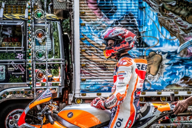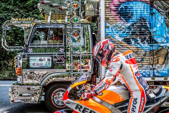 マルケス選手は、ターンパイクにてホンダRC213Vで走行する機会が与えられ、蕎麦屋のカブやデコトラ、1980年代から1990年代のNSRなどストリートバイク、RX-7FDとRE雨宮代表の雨宮さんなど、さまざまな時代の日本車や人物に遭遇する映像に仕上げられています。