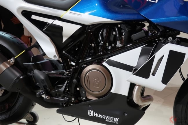 リアホイールの隙間がふさがっているディッシュホイールを採用し、エンジンについては公表されていませんが、SVARTPILEN 701(スヴァルトピレン701)と同じパワートレインを搭載した場合は、75馬力を発揮します。