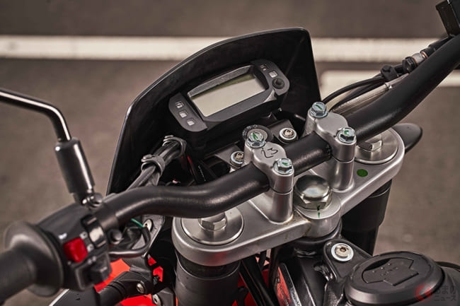 現在では希少な存在である125ccクラスのモタードモデル「SX125」は、全長2055mm /全幅820mm /全高1140mmというサイズとなっていますが、250ccのモタードモデル、ホンダ「CRF250M」(全長2125mm /全幅815mm /全高1150mm)と比較しても分かるように、同モデルは125ccクラスでありながらワンランク上の車格が与えられています。