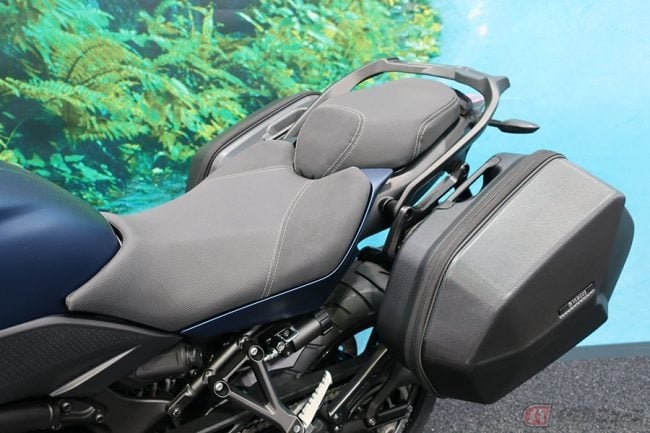 「YZF-R25」と共に話題を集めていた3輪バイク「NIKEN」のツーリングスポーツ・グレード「NIKEN GT」では、大型のスクリーンやグリップウォーマー、厚みを増した専用シートなど、多彩な装備を追加。