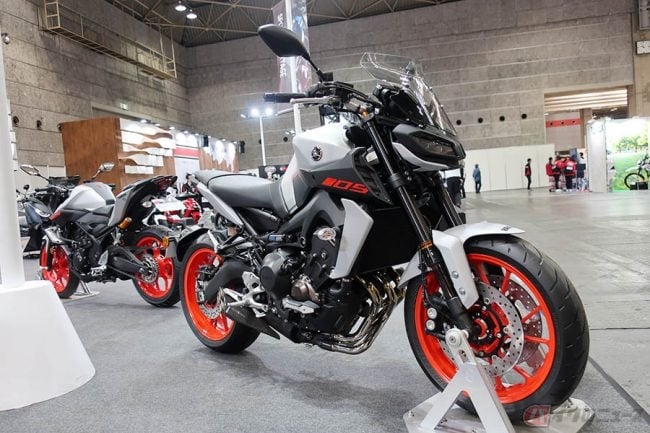 その他、大阪モーターサイクルショーのヤマハブースではカラーリング変更し、4月1日から販売される「MT-09 ABS」「MT-10 ABS」など、これから導入されるモデルも多数展示。