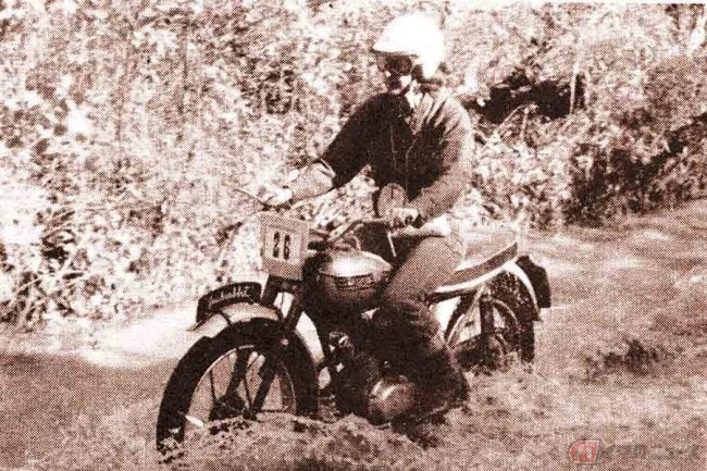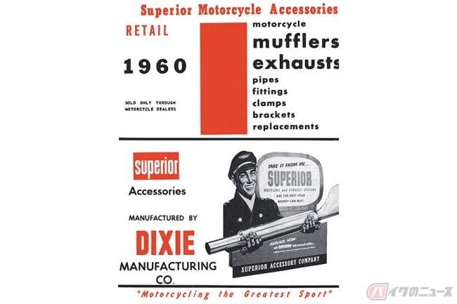 ちなみに当時のレースは現在のようなアスファルトのクローズド・サーキットで行われるものではなく、今で言うオフロードコースを走るような状況で、時には浅瀬の川なども渡ったとのことですが、そうした中、マフラーの位置を高く設定し、排気口からの水の侵入を防ぐアップタイプのマフラーが登場。最初のカスタムはスタイルというより、性能を求めた必然から生まれたものであることは間違いない事実でしょう。