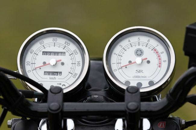 メーターについても、今では車もバイクもデジタル表記になってきているイメージでしたが、SR400は針のメーターのままで、ここでも可愛らしいレトロさを感じます。