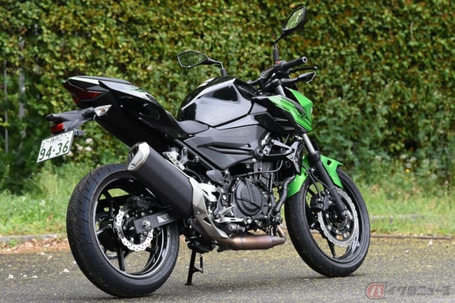 カワサキ「Z400」の価格(税込)は66万7440円、カラーバリエーションは「キャンディライムグリーン×メタリックスパークブラック」と「パールスターダストホワイト×メタリックスパークブラック」の2種類です。