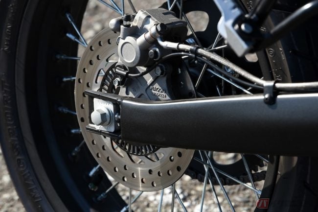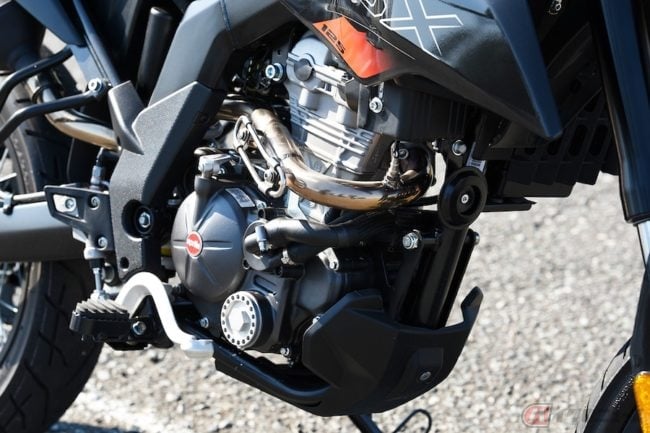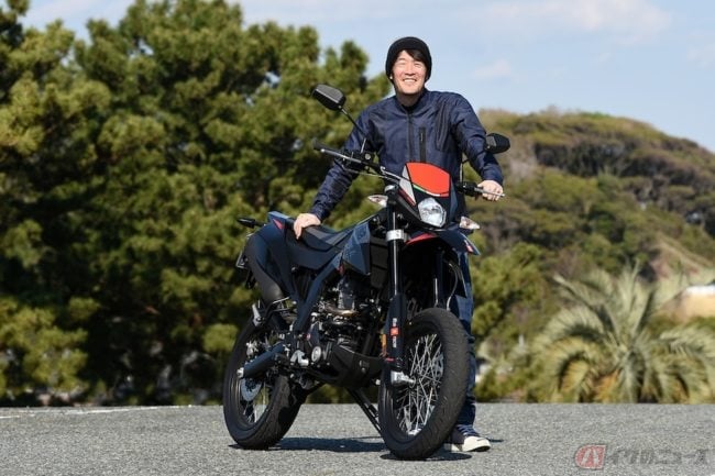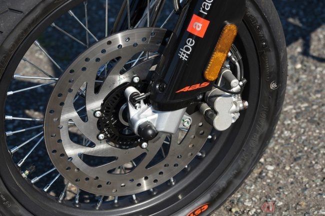 モタードのセオリー通り、ベースになっているのは「RX125」というオフロードモデルです。フロントに21インチ、リヤに18インチホイールを装備しているそれを、前後とも17インチにダウン。これによってオンロードでのハンドリングが高められているというわけです。
