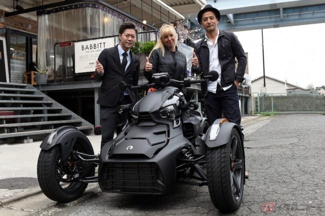 愛のおくるま伝道師、小沢コージ、先日ちょっと不思議な乗り物に乗ってきました。その名もカンナム・ライカー! カナダのBRP社が作った、バイクでもないトライクでもない新感覚の三輪モーターサイクルで、3月に日本初上陸。具体的には後ろ二輪の一般的トライクと違い、前が二輪になってるのがミソです。