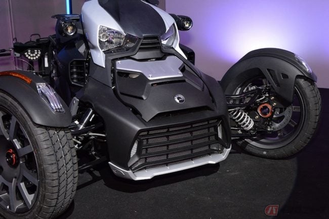 なぜならそもそもBRP社は、航空機のボンバルディア社から枝分かれしたメーカー。世界で最初にスノーモービルを開発。その後水上バイクやATV(全地形対応車)も手掛けて世界的なシェアを持っており、要するに陸・海・雪上と制覇。それも主にレジャー用であり、ある意味Xゲームのような世界観で、スケボーやスノボーを愛する若い人に売りたいのかもしれません。