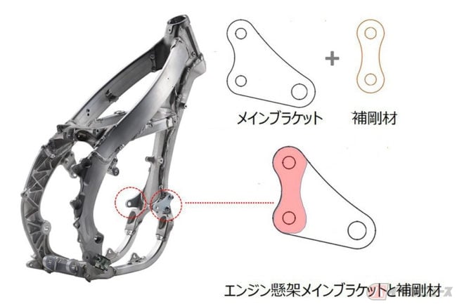 車両本体には2パターンのエンジンマップが保存でき、ハンドル左に配置したモードスイッチにより、レース中でも切り換えが可能となっています。