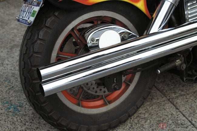 空に向かってそびえるようなアップスゥイープマフラーやシンプルなドラッグパイプなど、ともすればスタイルや装飾性から作り上げられたイメージを持たれることが多いチョッパーのマフラーですが、じつのところそもそも機能的な部分を求め、生み出されたという歴史的な背景が存在します。