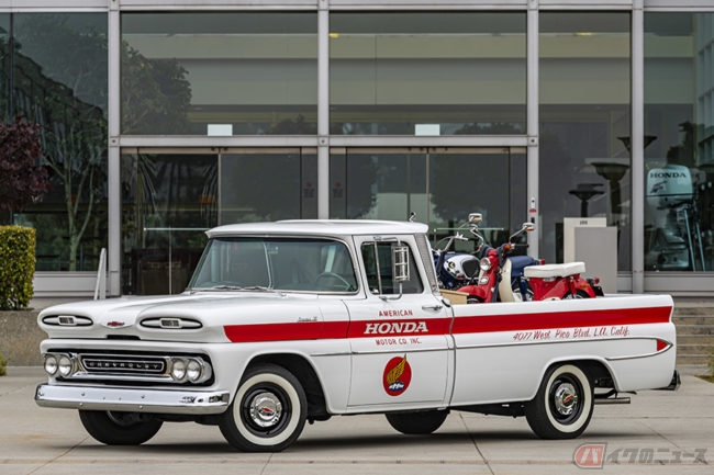 2019年6月に60周年を迎えたAmerican Honda Motor Co.(アメリカン・ホンダ)は、60周年記念式典の一部として、1960年代初頭にディーラーにオートバイを配達するのに使用したシボレー製ピックアップトラック「Apache 10(アパッチ・テン)」を当時の姿に修復し、カリフォルニア州トーランス本社のロビーに展示しました。