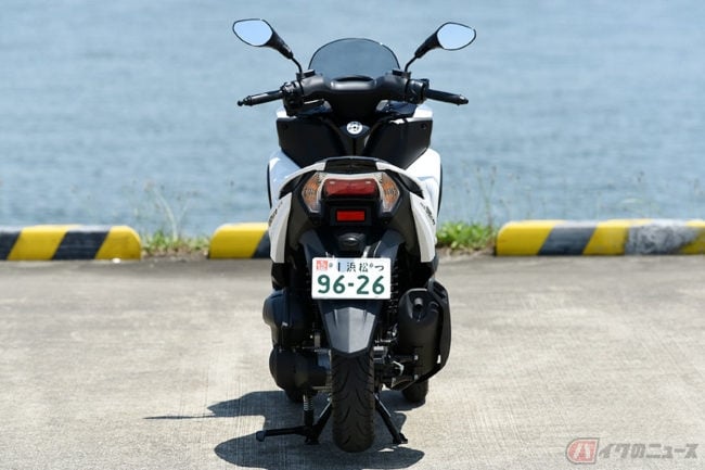 しかもこの「トリシティ」、前輪がひとつ増えているにもかかわらず、全体的な見た目がコンパクト。編集部の方とバイクに乗って移動しているとき、私の前を走るトリシティを見ていたのですが、一般的な2輪のスクーターと幅や外見が変わらないのです。