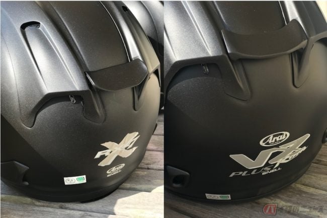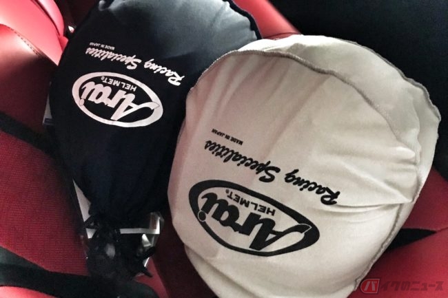 そう、ヘルメットが多少球形ではなくともそれほど驚かない。だがバイク用ヘルメットに、レーシングカーもたじろぐほどの空力パーツが取り付けられていることを知ってドキドキしたのも事実なのだ。