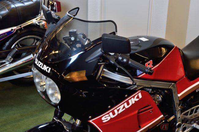 1984年に登場したスズキのレーサーレプリカ「GSX-R」は、400クラスで世界初採用の軽量・高剛性アルミ製MR-ALBOXフレームに排気量398cc水冷4サイクル4気筒エンジンを搭載、自主規制の基準となった最高出力59PS/11000rpmhを発生させていました。