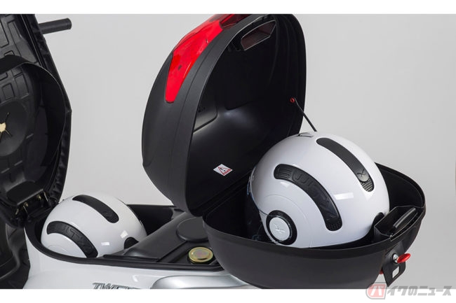 シティコミューターとして人気の「ツイート」ですが、40台限定で用意されたスペシャルエディションでは、利便性をさらに高めるため、ハンドルグリップまでをカバーする大型の「ロングスクリーン」と、ジェットタイプのヘルメットを収納できる「30Lトップケース」を標準装備しています。
