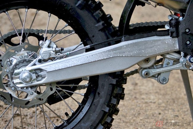 ハスクバーナ・モーターサイクルズのエンデューロモデル(FE、TEシリーズ)は、リンクを介したサスペンションを搭載しており、ギャップやジャンプの着地などの姿勢変化の少なさや、吸収性に優れています。