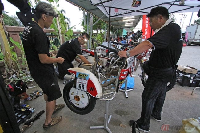 2019年のアジアンラリーには、2輪(MOTO)が35台、4輪(AUTO)が37台、そして渡辺氏率いるサイドカーが2台エントリーしました。
