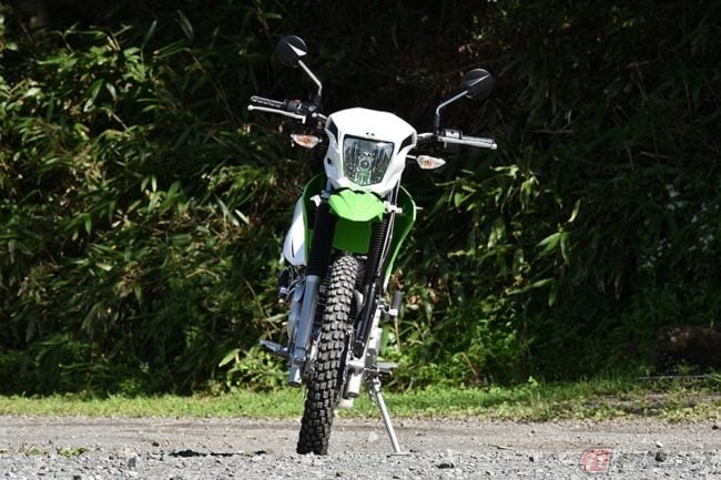 以前、国内販売していたKLX250と比べると、まずは価格差が大きいかと思います。2016年に登場したKLX250ファイナルエディションが当時、ABS無しで約52万円程度だったのに対してKLX230はABS付きで45万(消費税別)で提案しています。
