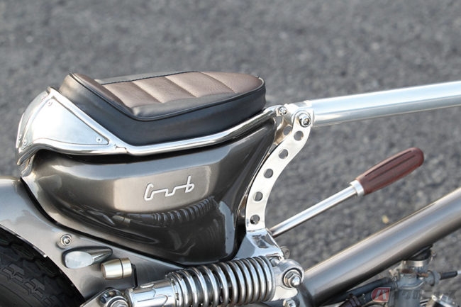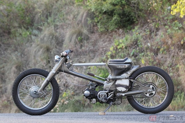 実際、これまで、その累計の販売台数からもお分かりのとおり、プロ・アマ問わず多くのビルダーが『スーパーカブ』をベースにカスタムを生み出してきましたが、ここに紹介する和歌山の『モトガレージ・ライフ』が手掛けた一台は、その中でも特に出色の出来栄えとなっています。