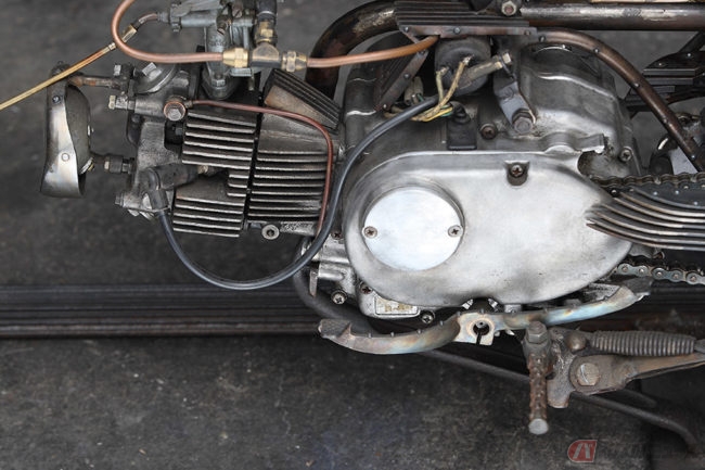 昭和の時代なら10代の頃に「手近にある原チャリをイジった」という経験があるという方も多いと思いますが、木村信也氏がベースに選んだのは1960年式ホンダC100。OHVエンジンを搭載した、いわばスーパーカブの元祖といえるモデルです。