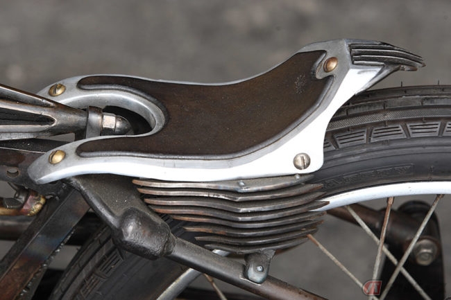 スクエア(角型)となったメインフレームはネックが寝たハーレーの『ゼロ・スタイル』を踏襲したシルエットとなっているのですが、そこに散りばめられたディテールの数々は製作されてから13年以上の時を経て見ても尚、唸らされるもの。